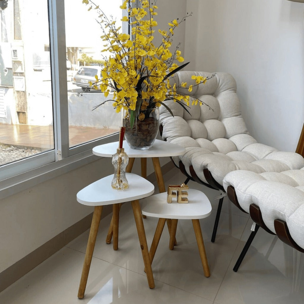 Kit Trio de Mesinhas Lateral – Design Retrô com Tampo Orgânico