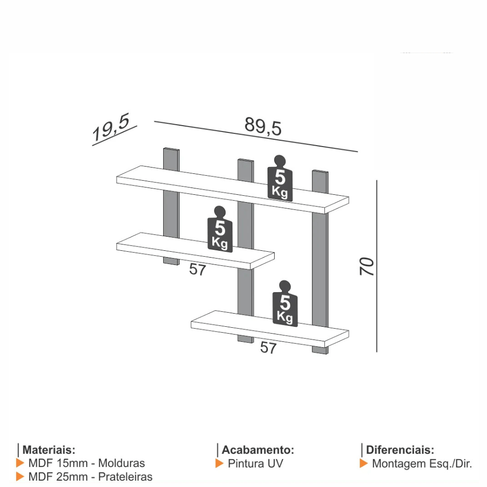 - Prateleiras MDF 25mm